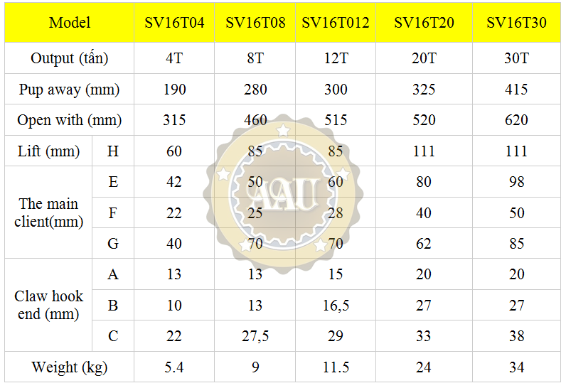 1) CẢO THỦY LỰC 3 CHẤU TỰ ĐỊNH TÂM SOV MODEL SV16T12 ( 12 tấn, 300 mm).