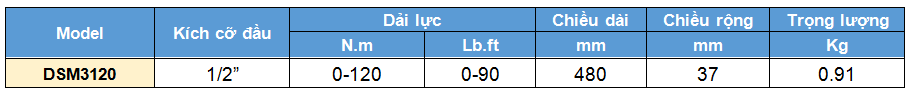- Cờ lê lực chỉ kim hãng Novatork model DSM3120 có dải lực siết từ 0 - 120 N.m, khẩu đầu ra theo tiêu chuẩn 1/2", sai số lực siết +- 3%.