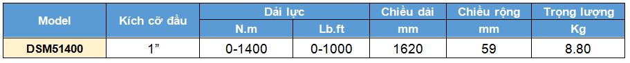 - Cờ lê lực chỉ kim hãng Novatork model DSM51400 có dải lực siết từ 0 - 1400 N.m, khẩu đầu ra theo tiêu chuẩn 1", sai số lực siết +- 3%.